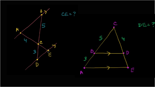 Sal solves two problems where a missing side length is found by proving that triangles are similar and using this to find the measure.