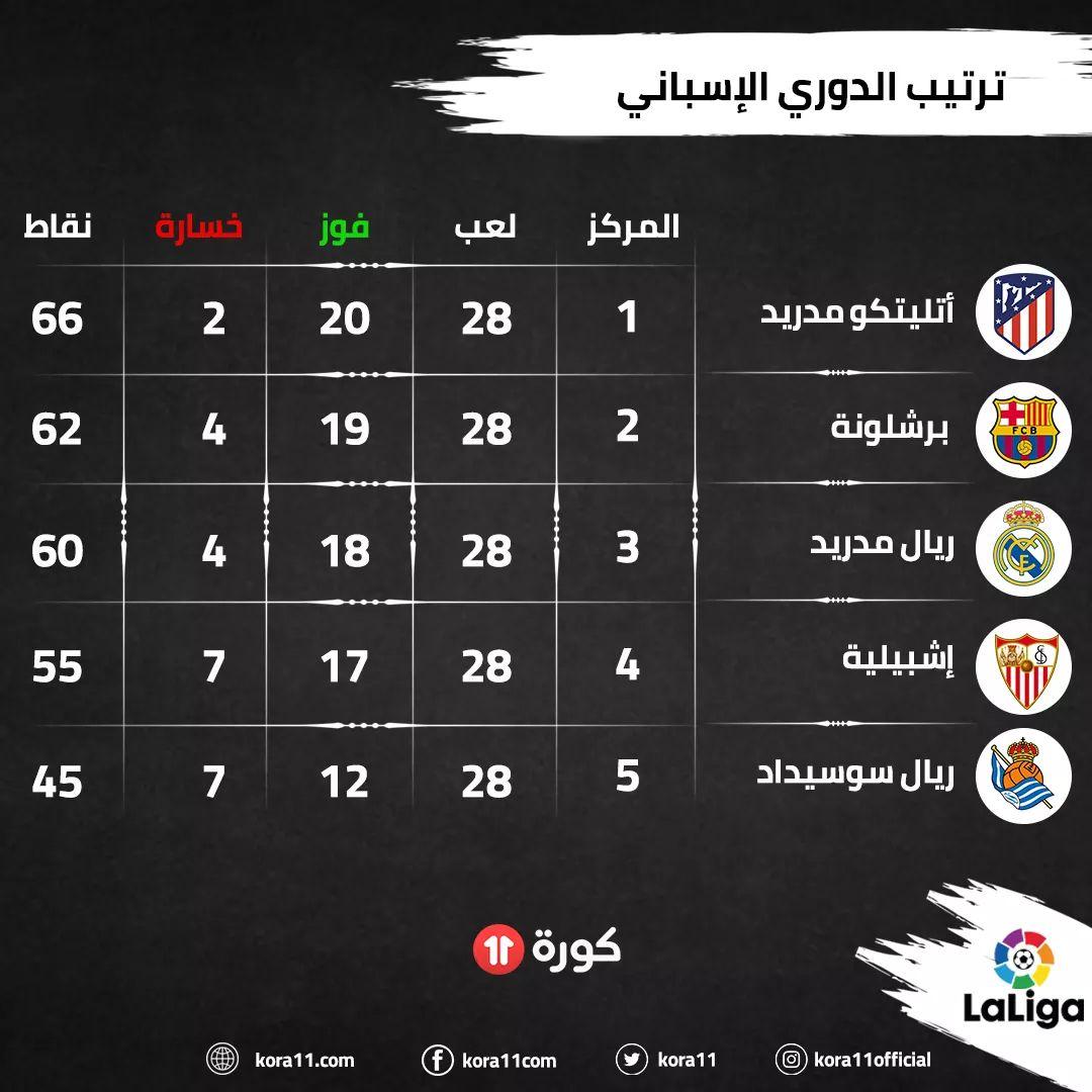 جدول ترتيب الدوري الإسباني الحالي والكامل لموسم 2020/2021 ، يتم التحديث فورًا عقب كل مباراة.